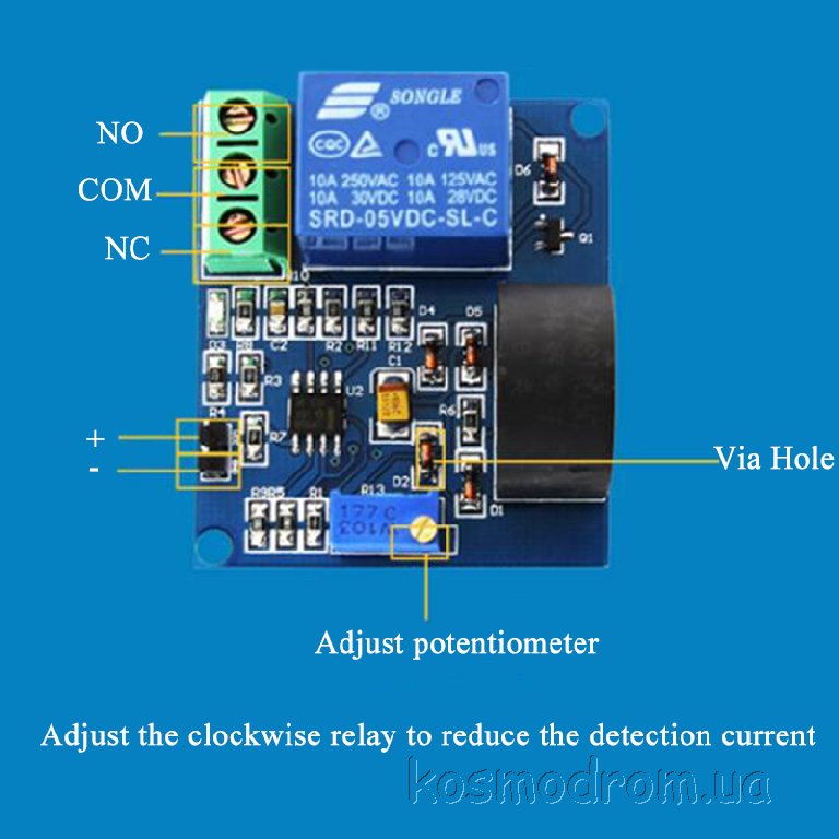 необходимого порога по току срабатывает реле. Порог срабатывания настраивается