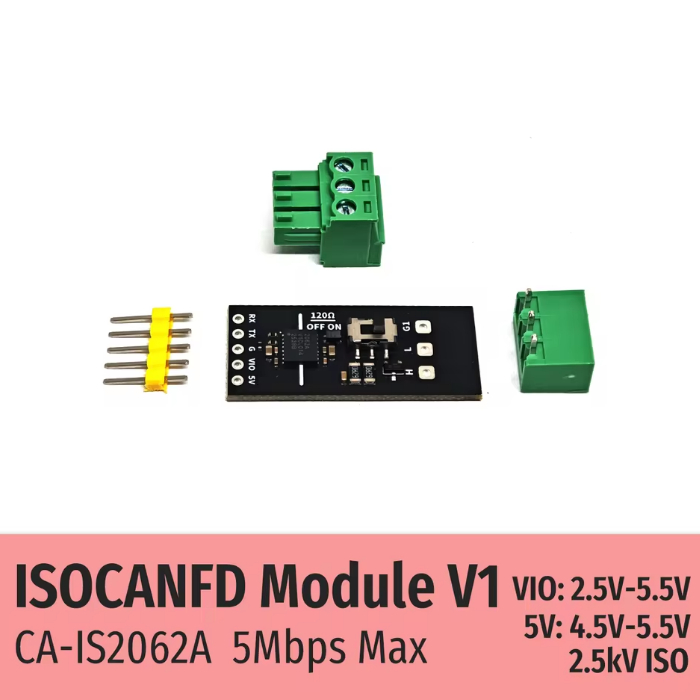 | ISOCANFD Module V1 Преобразователь интерфейсов изолированный высокоскоростной CAN?FD модуль с гальванической развязкой, I/O 2,5–5,5?В, для промышленной автоматизации, транспорта и робототехники.