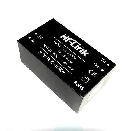 | HLK-40M09 Модульный сетевой источник питания на плату AC/DC преобразователь на плату в пластиковом корпусе. Мощность: 40 Вт. Входное напряжение: 220В. Выходное напряжение: 9V. Вых. ток: 4444mA