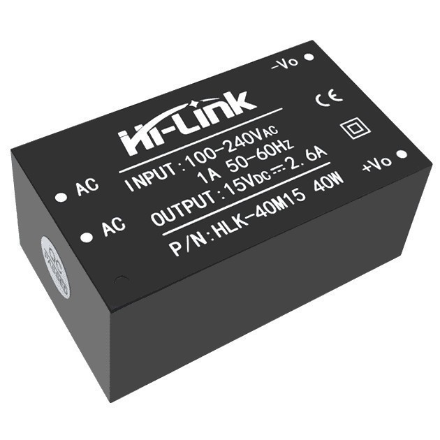 | HLK-40M15 Модульный сетевой источник питания на плату AC/DC преобразователь на плату в пластиковом корпусе. Мощность: 40 Вт. Входное напряжение: 220В. Выходное напряжение: 15V. Вых. ток: 2667mA