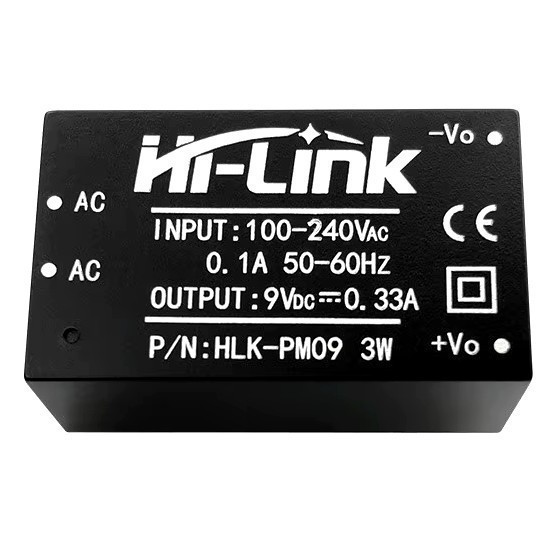 | HLK-PM09 Модульный сетевой источник питания на плату AC/DC преобразователь на плату в пластиковом корпусе. Мощность: 3 Вт. Входное напряжение: 220В Выходное напряжение: 9В, Вых. ток: 0.6A ном.Кол-во выходов: 1