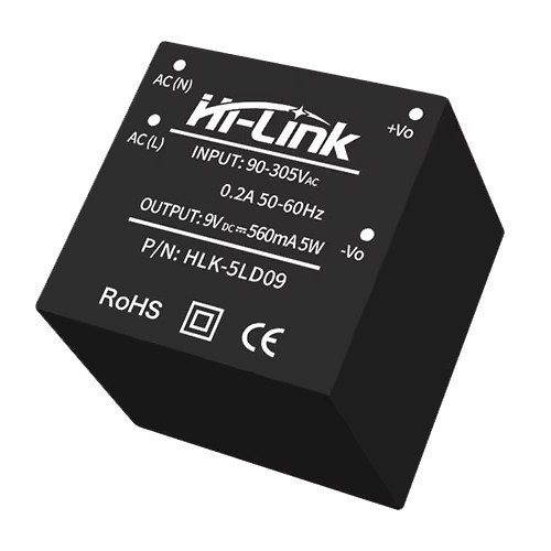| HLK-5LD09 Модульный сетевой источник питания на плату AC/DC преобразователь на плату в пластиковом корпусе. Мощность: 5 Вт. Входное напряжение: 85...305В Выходное напряжение: 9В, Вых. ток: 560мA ном, Кол-во выходов: 1