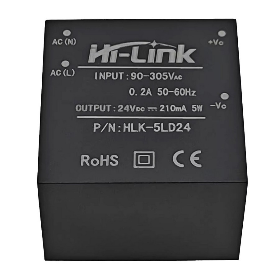 | HLK-5LD24 Модульный сетевой источник питания на плату AC/DC преобразователь на плату в пластиковом корпусе. Мощность: 5 Вт. Входное напряжение: 85...305В Выходное напряжение: 24В, Вых. ток: 210мA ном, Кол-во выходов: 1