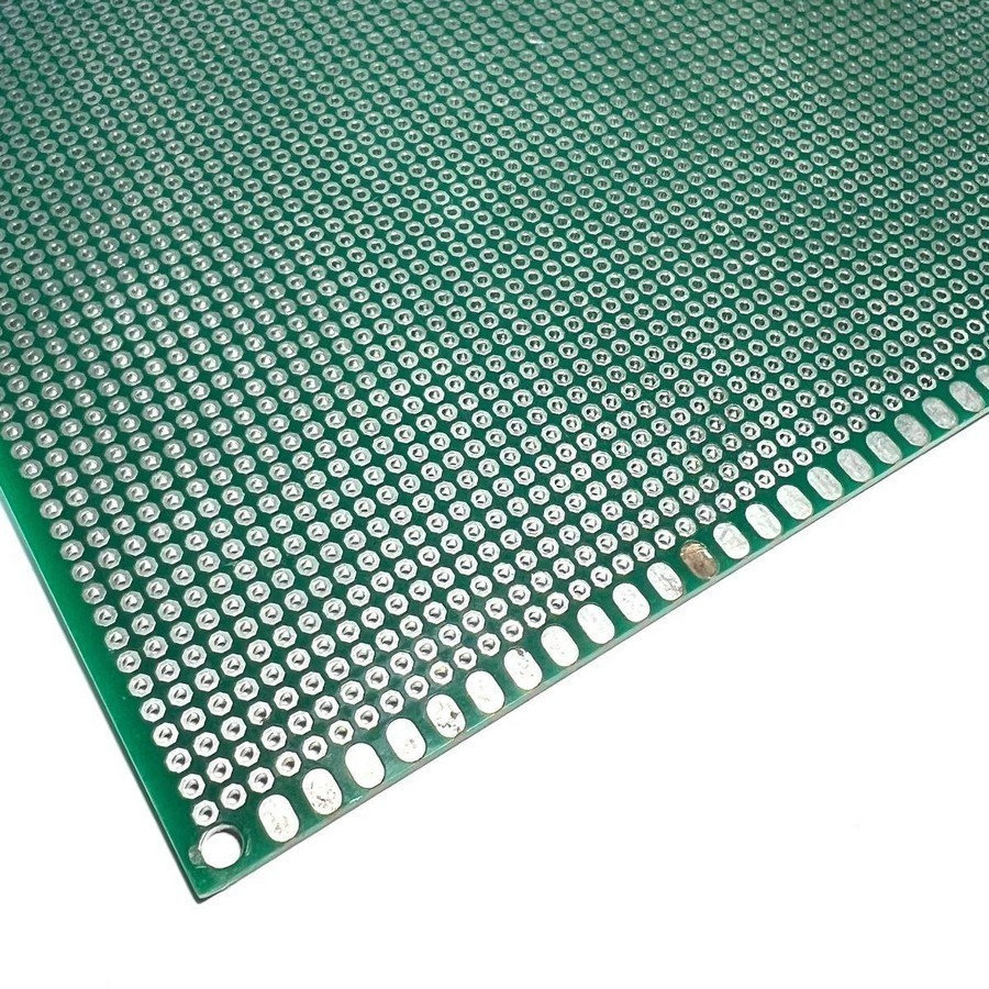 | PCB-2L-G-10X22 Макетная плата печатная Макетная плата, двухсторонняя, с металлизацией отверстий, размеры 100х220 мм. Цвет маски зелёный. Шаг 2,54 мм.