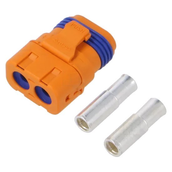 | XT150-F-Blue Разъем питания Разъем XT-150 предназначен для соединения силовых кабелей диаметром 6 мм и током до 150 Ампер.