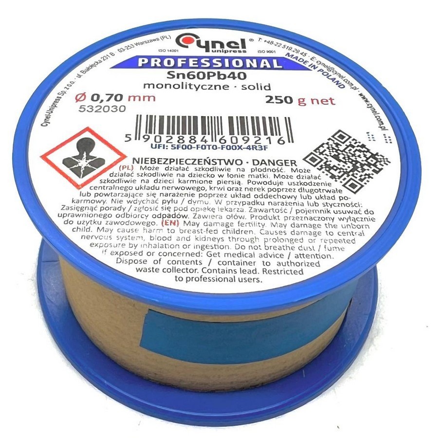 | Sn60Pb40-B/T 0.70 250g Припой Проволочный припой Sn-60% Pb-40% 0.70 мм 250g Cynel. Без флюса