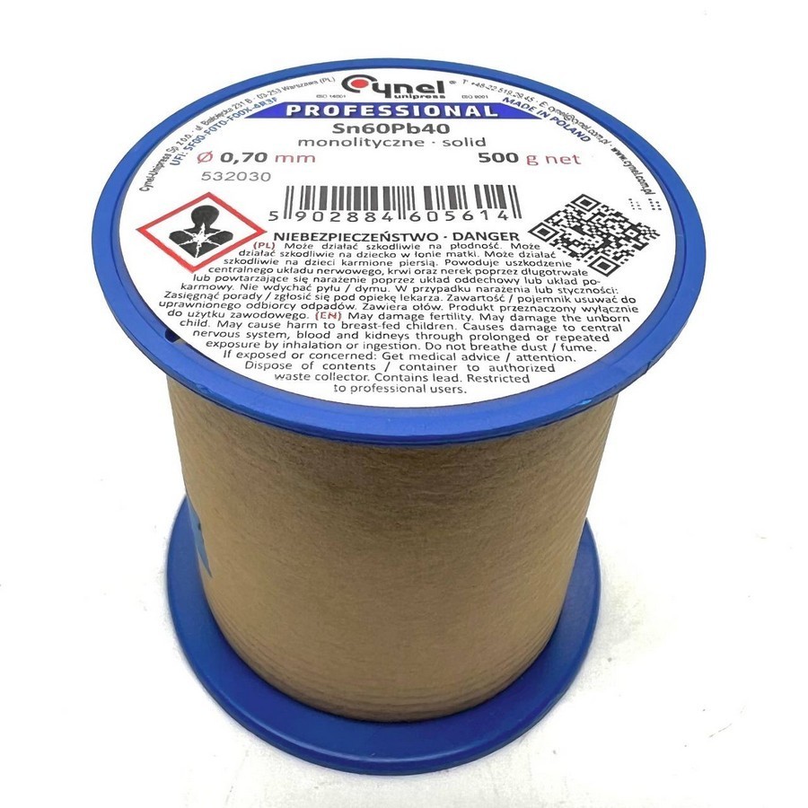| Sn60Pb40-B/T 0.70 500g Припой Проволочный припой Sn-60% Pb-40% 0.70 мм 500g Cynel. Без флюса