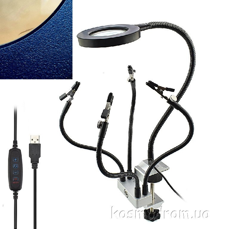 | УЦЕНКА - SN5USB-LED Паяльные принадлежности Третья рука со светодиодной подсветкой и питанием от USB. Царапина на линзе