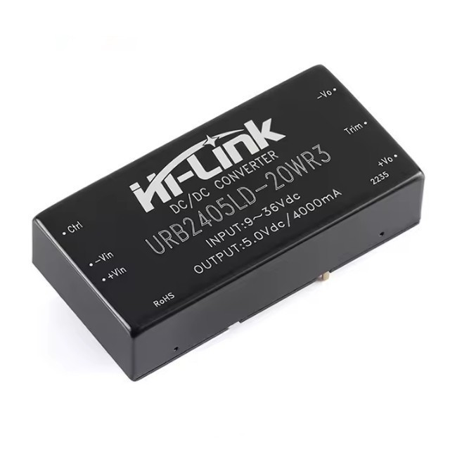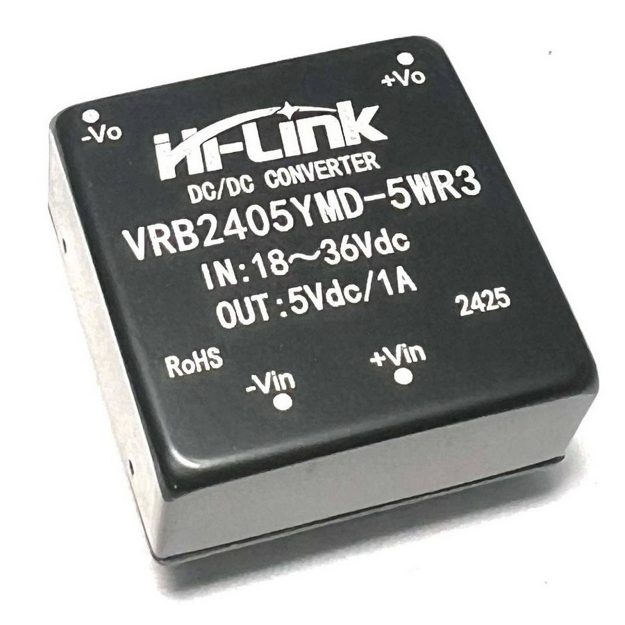 DC/DC преобразователь на плату в пластиковом корпусе. Мощность: 20 Вт. Входное напряжение: 24 VDC (9...36 VDC). Выходное напряжение: 5 VDC. Вых. ток: 4000 мА. Кол-во выходов: 1